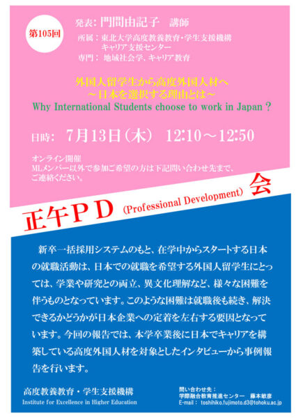 【7/13開催】第105回正午PD会「外国人留学生から高度外国人材へ~日本を選択する理由とは~」