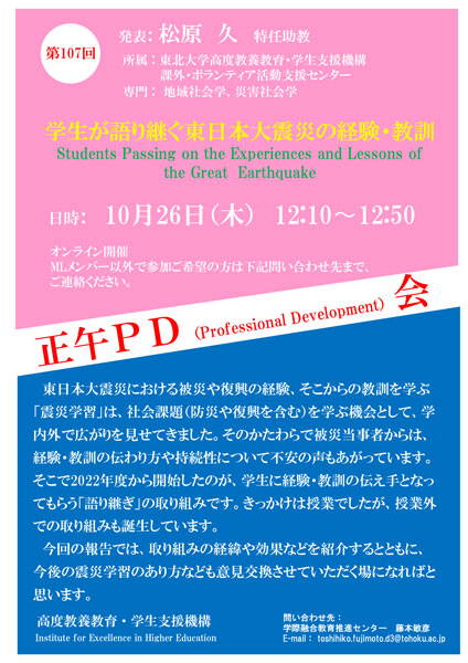 【10/26開催】第107回正午PD会「学生が語り継ぐ東日本大震災の経験・教訓」