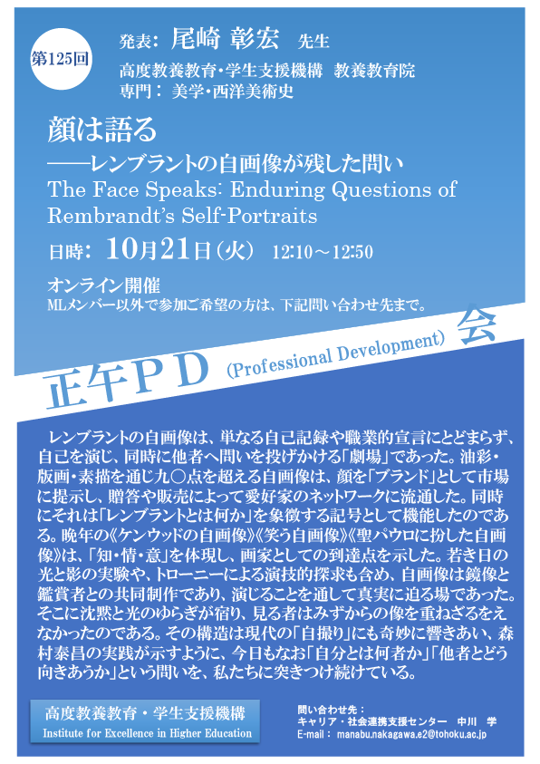 第125回正午PD会「顔は語る―レンブラントの自画像が残した問い」